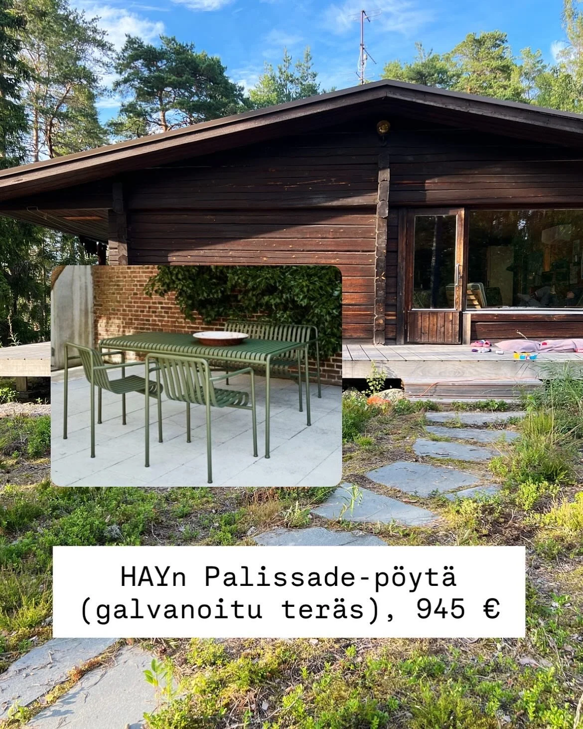 Nyt olen kuumeisesti googlaillut terassille pöytäryhmää. Kuumeisesti tarkoittaa sen luokan pakkomielteisyyttä, että olen häiriköinyt aiheella kaikkia ystäviäni (esimerkiksi Kirsikkaa kello yhdeltä yöllä). Kutka muistavat mun nojatuolityynysaagan, tietävät että otan nämä asiat vakavasti. (Mökille kaiken voi ja täytyy hankkia “loppuelämäksi” kun ei asiat sillä lailla kulu täällä kuin kotona. Siks on pakko harkita ja harkita.)