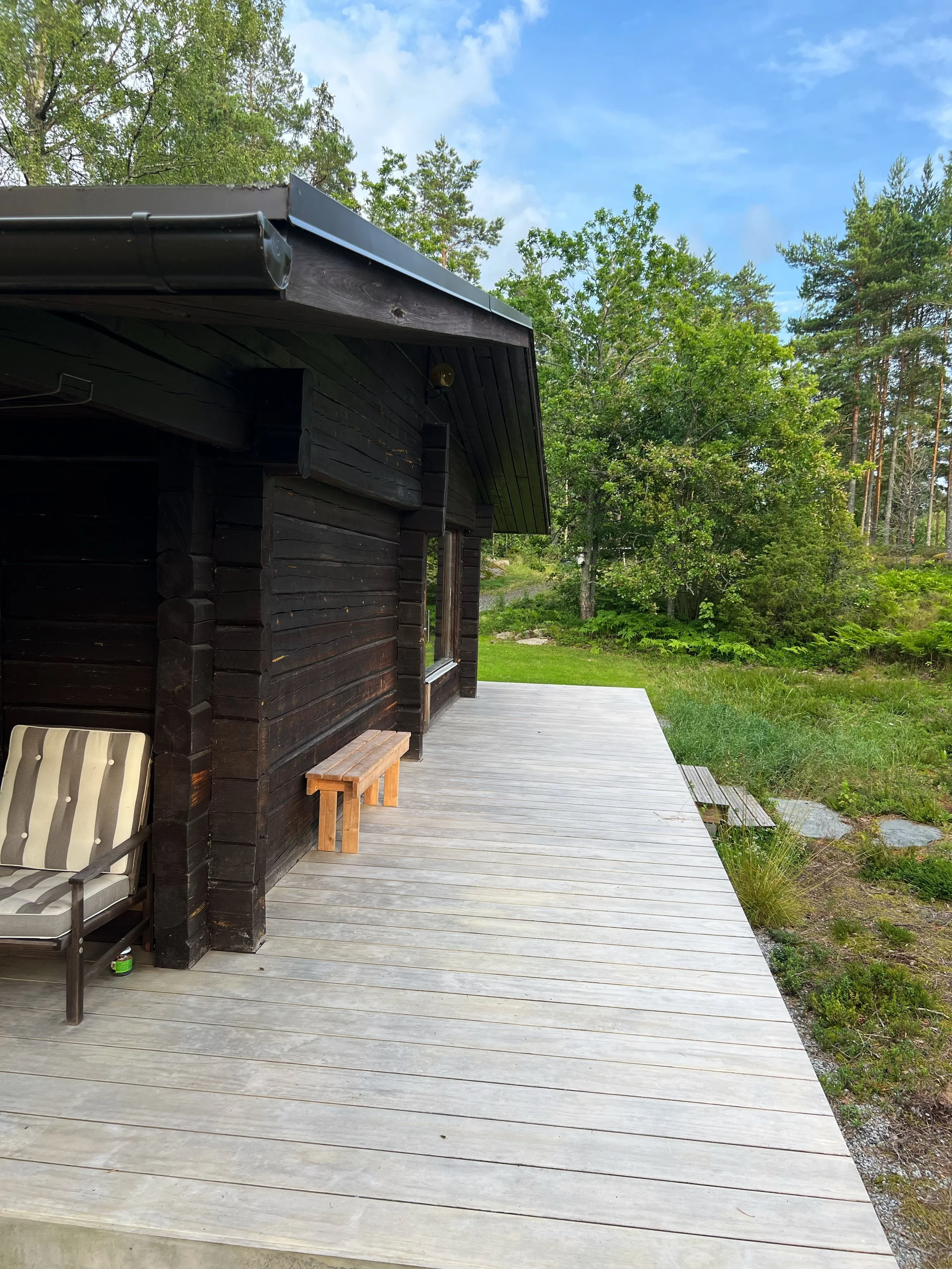 Havahduin myös siihen, että mökkirempasta alkaa olla viisi vuotta, ja mun sisustusinnostus droppasi sen jälkeen täysin. En ole saanut edes lamppuja ostettua kattoon. Onneksi täällä on ollut meidän mamman ja papan kalusteet valmiina, niin tyyli ja isot linjat on kunnossa. Mutta kaikenlaista pientä, kuten ne lamput sekä esimerkiksi tekstiilejä, kuten tyynyjä tai päiväpeittoja tänne voisi kyllä alkaa hankkia.